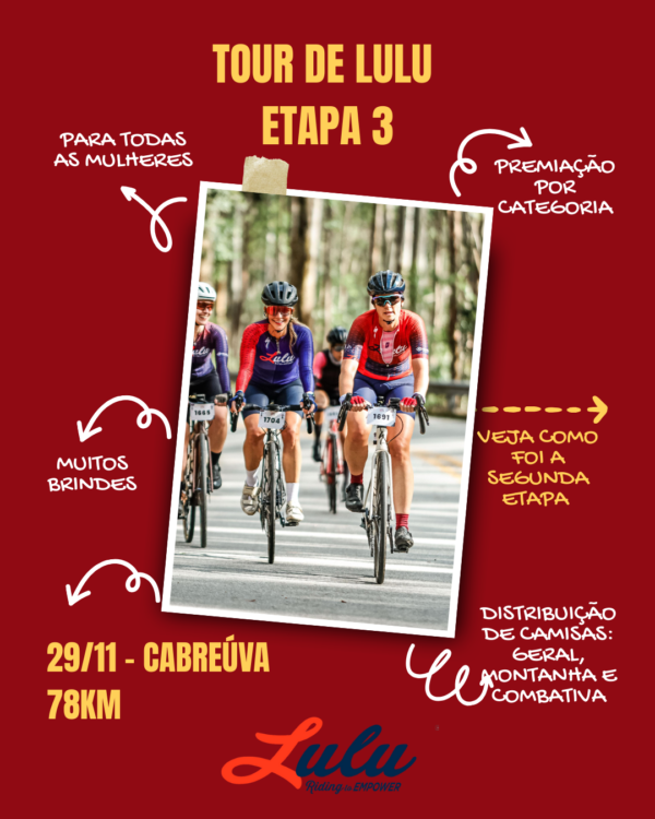 O TOUR DE LULU é um desafio para alunas e não alunas , ou seja, todas as CICLISTAS que quiserem fazer um treinão premiado entre mulheres.